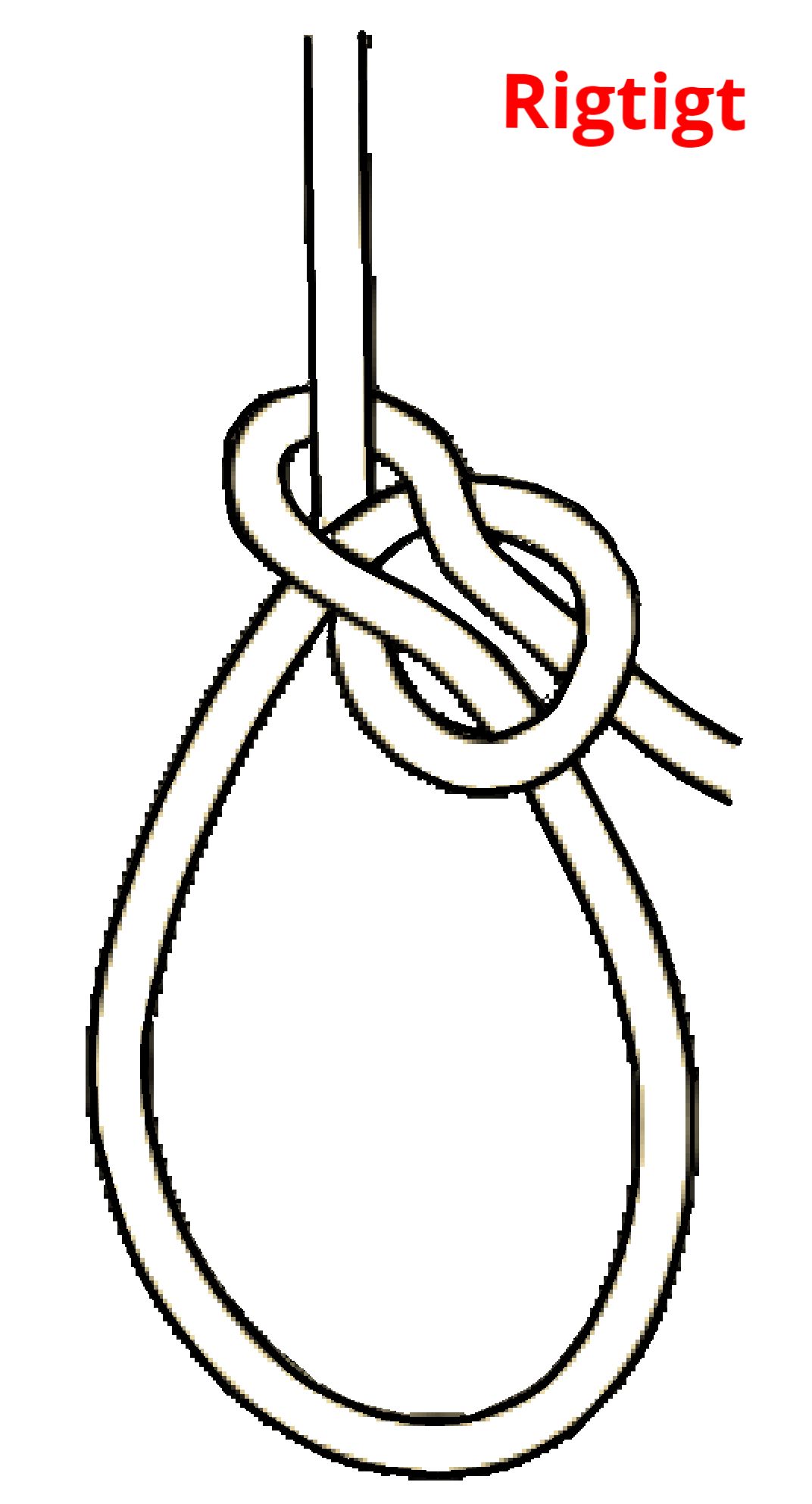 Tampene/enderne skal vende til den samme side for at pælestikket er slået korrekt. Det samme gør sig gældende med flagknobet.