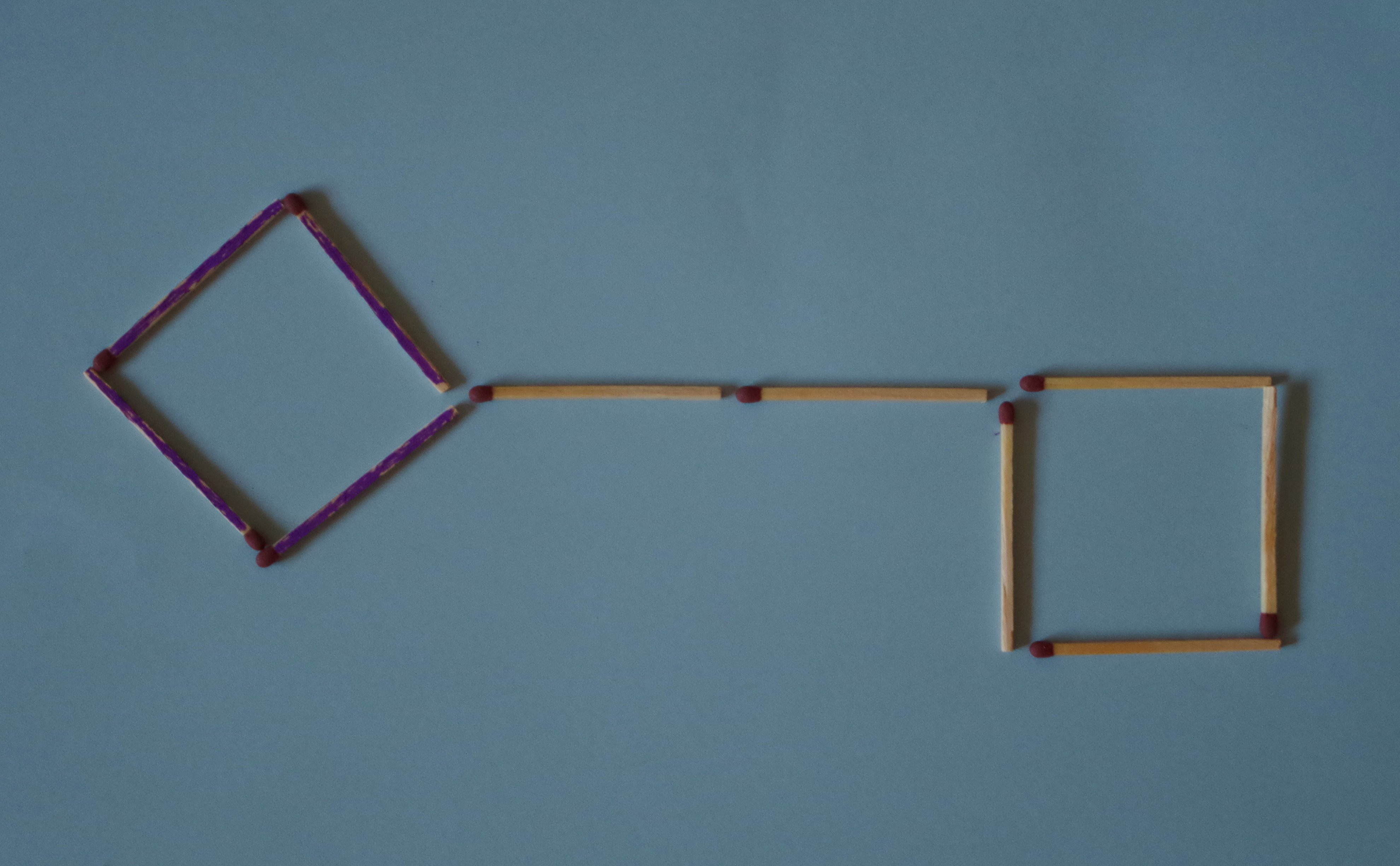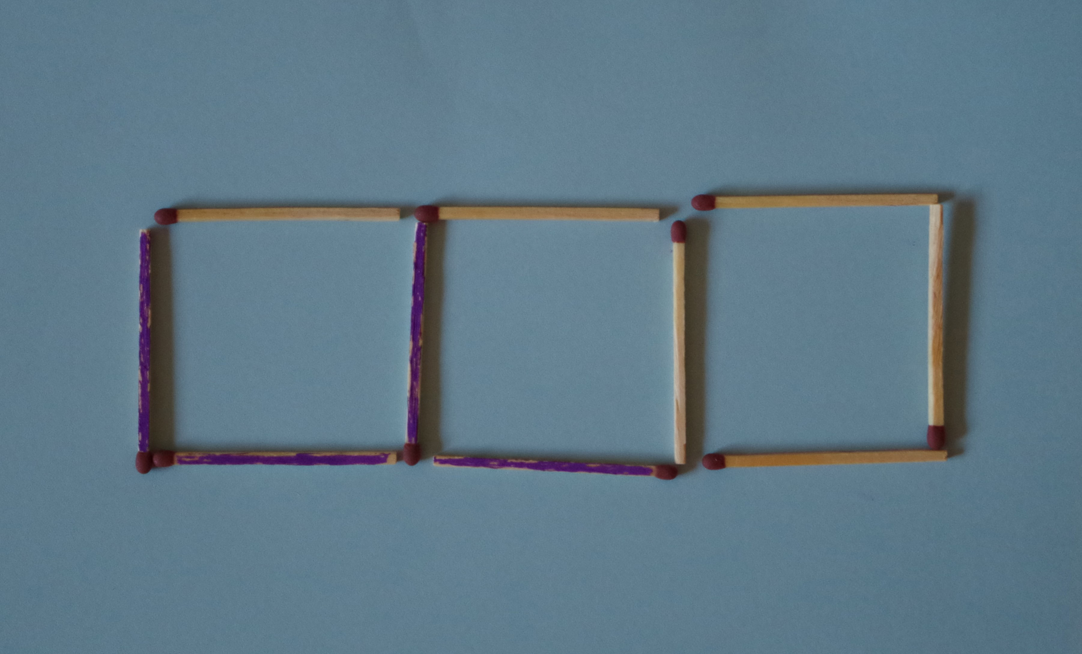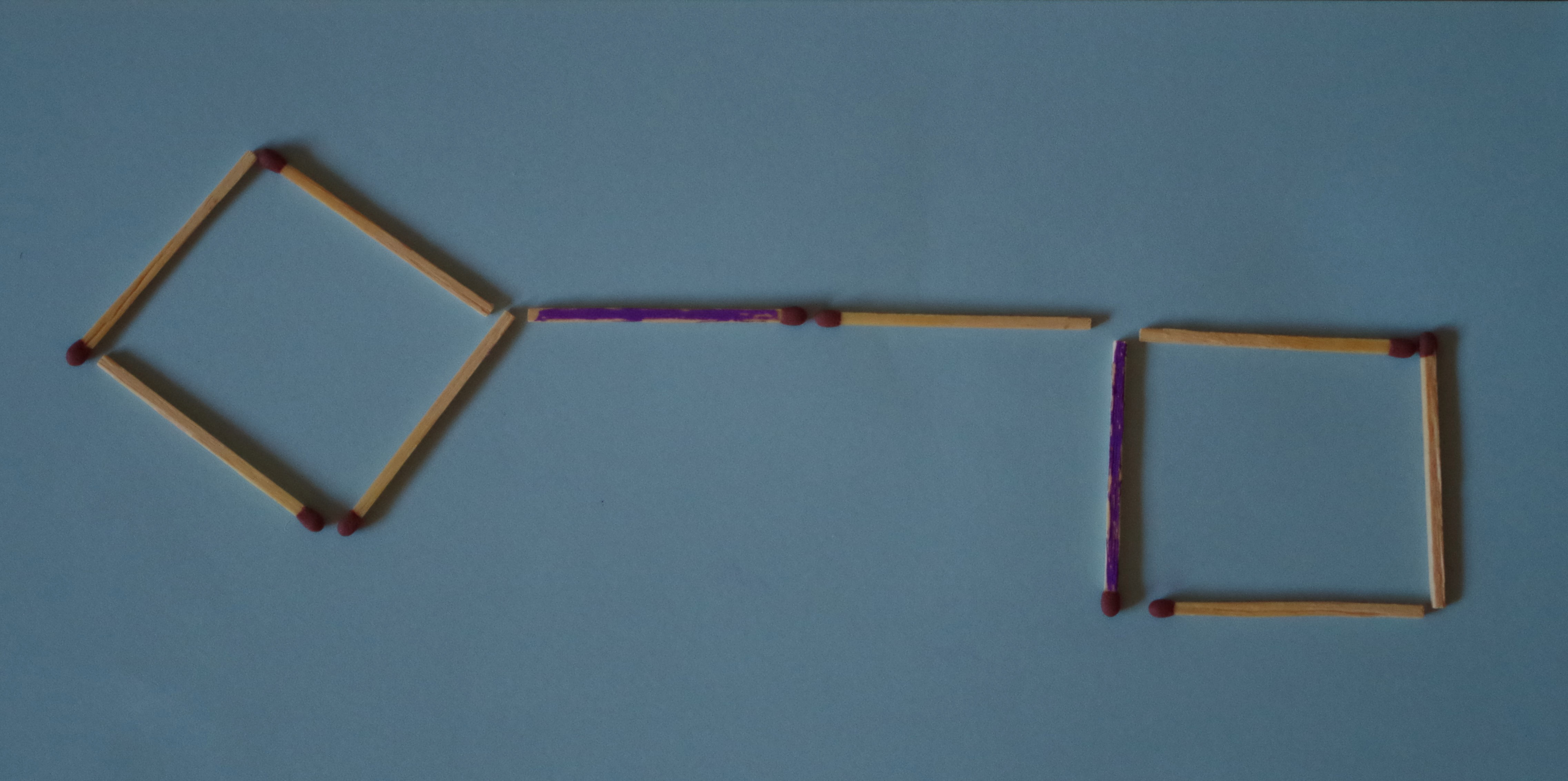 Pa engelsk hedder det matchstick puzzels og oversat til dansk - tændstikpuslespil. Den lille intellektuelle udfordring kan sagtens laves med rafter. Der findes mange variationer på nettet. Her er et par eksempler på nogle puslespil I kan laves. (Eksemplerne er vist med tændstikker)