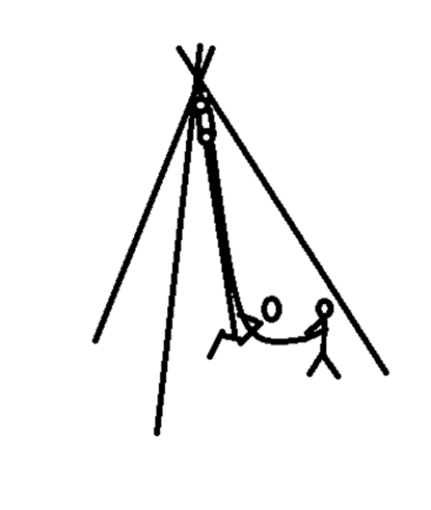 Som forberedelse laves der et tre-ben af rafter med en blok/talje i toppen. Trebenet må gerne stå med godt spredte ben og være minimum 4 meter høj. Blokken som monteres i toppen af trebenet, skal have en god udveksling (min 3 hjul).