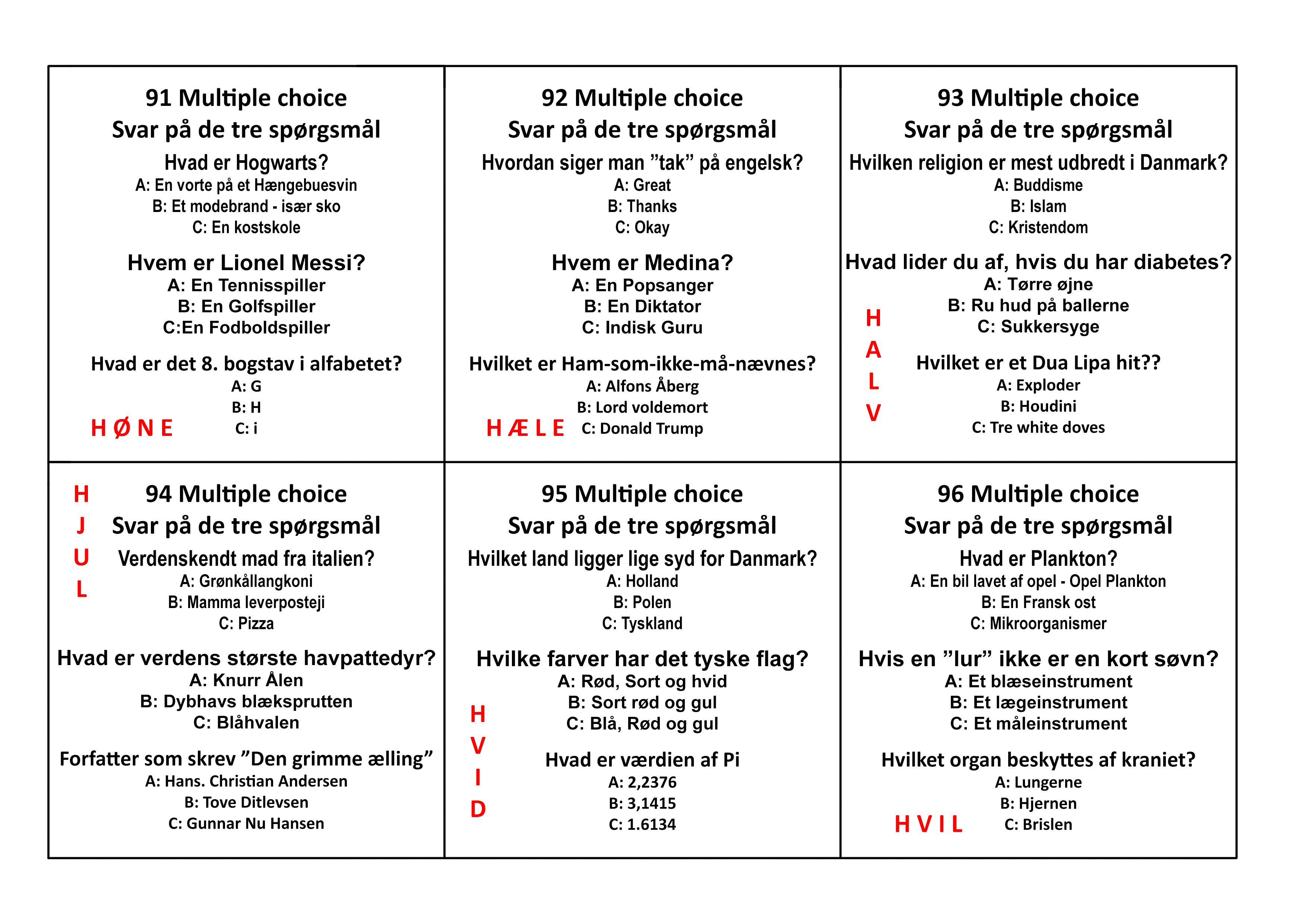 Reglerne med posterne er: