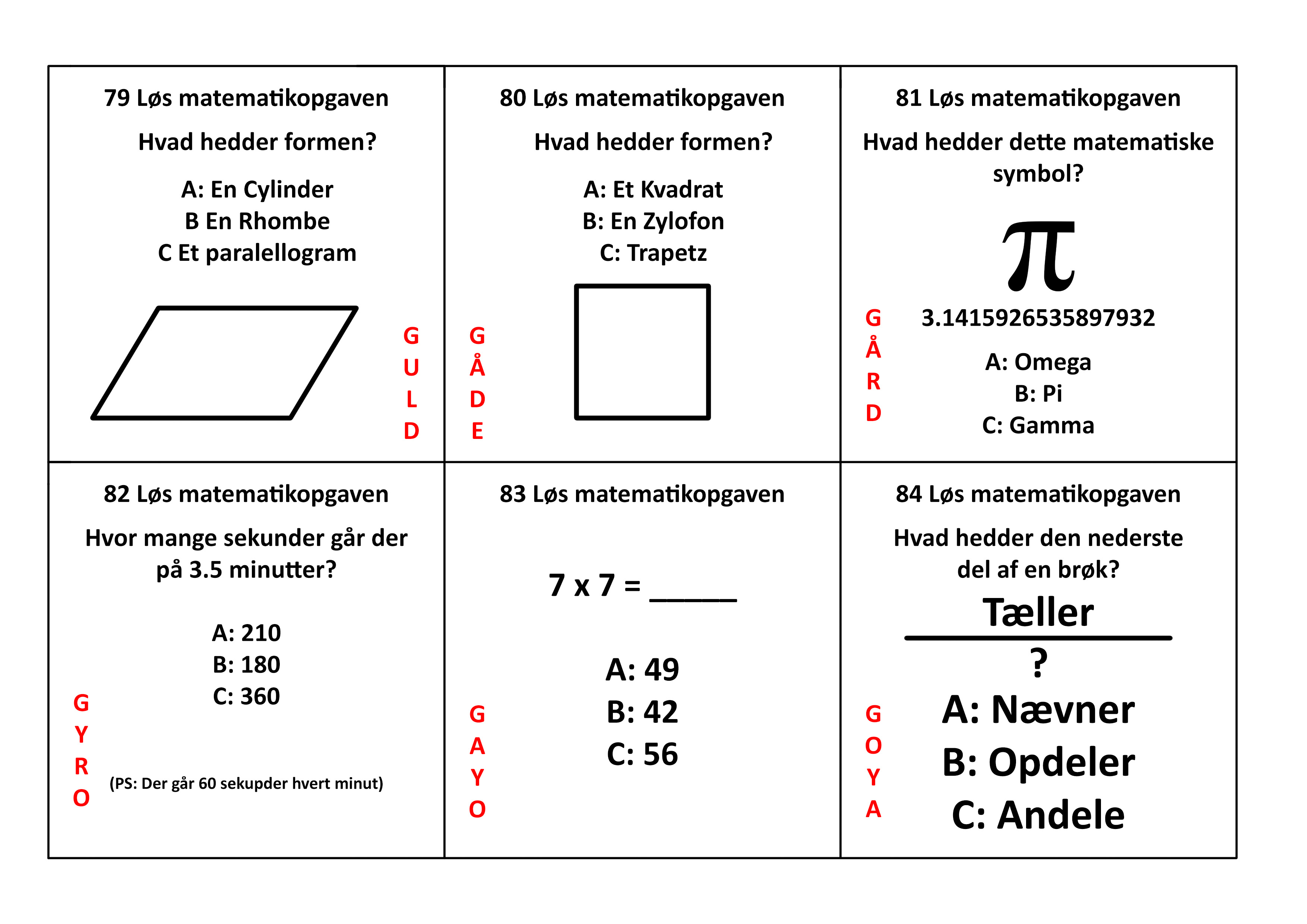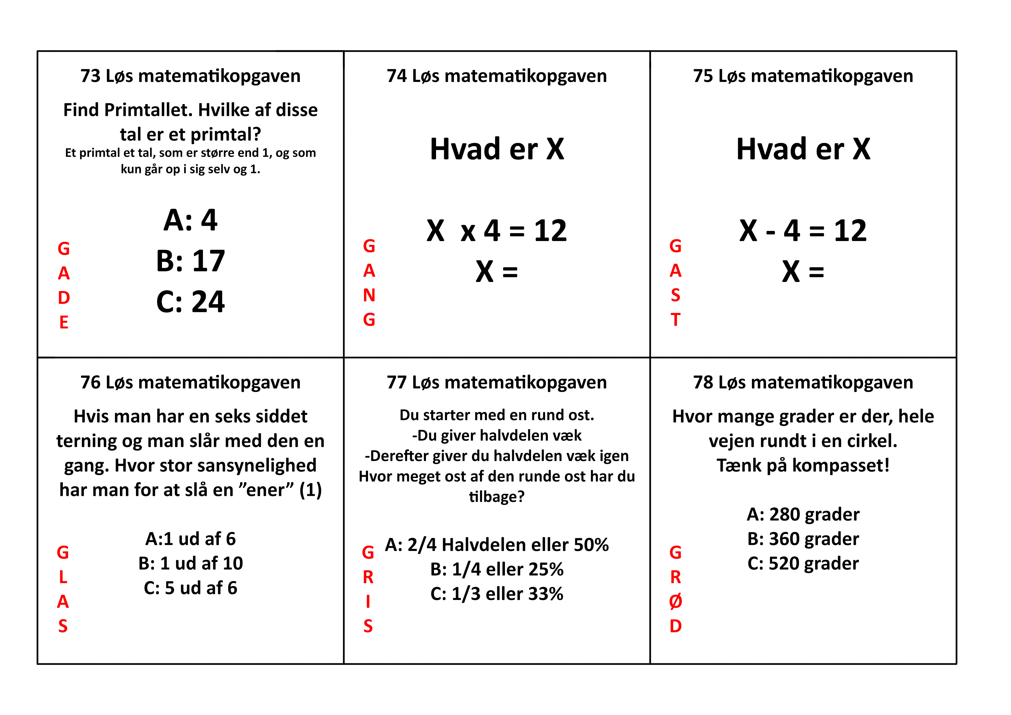 Når man er færdig ved posten, så skal posten nulstilles, så den kan løses af den næste deltager. Der må ikke skrives på posterne. Opgavens nr. og løsning skrives ned. Hvis man ikke kan løse opgaven på posten, så har posten et kontrolord, sa spilstyren kan se at deltageren som minimum har fundet opgaven. Deltagerne må ikke tale sammen under løbet, så posterne skal deltagerne løse selvstændigt! (posterne er målrettet de 8 til 12 årige, men kan sagtens bruges til ældre spillere!)