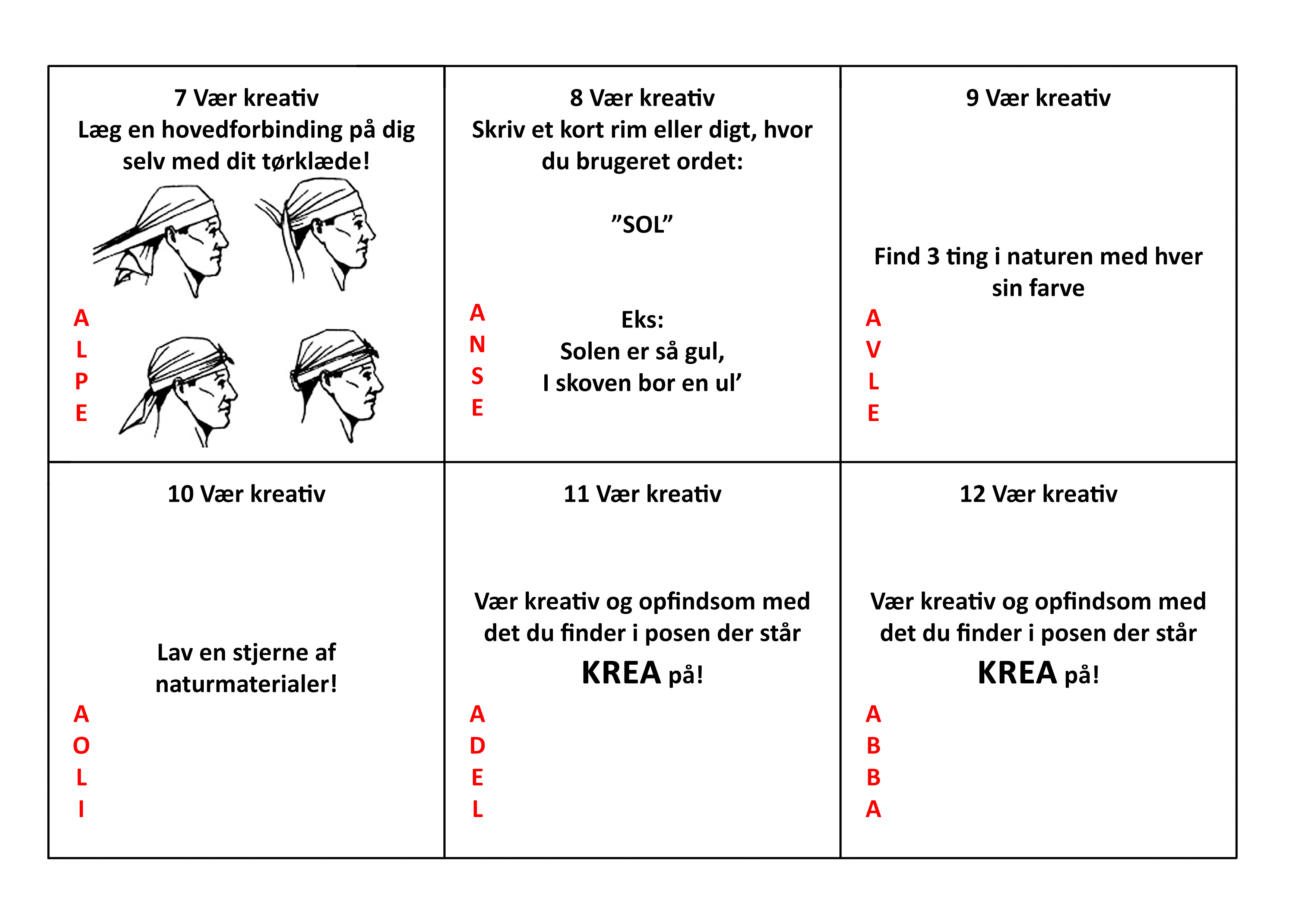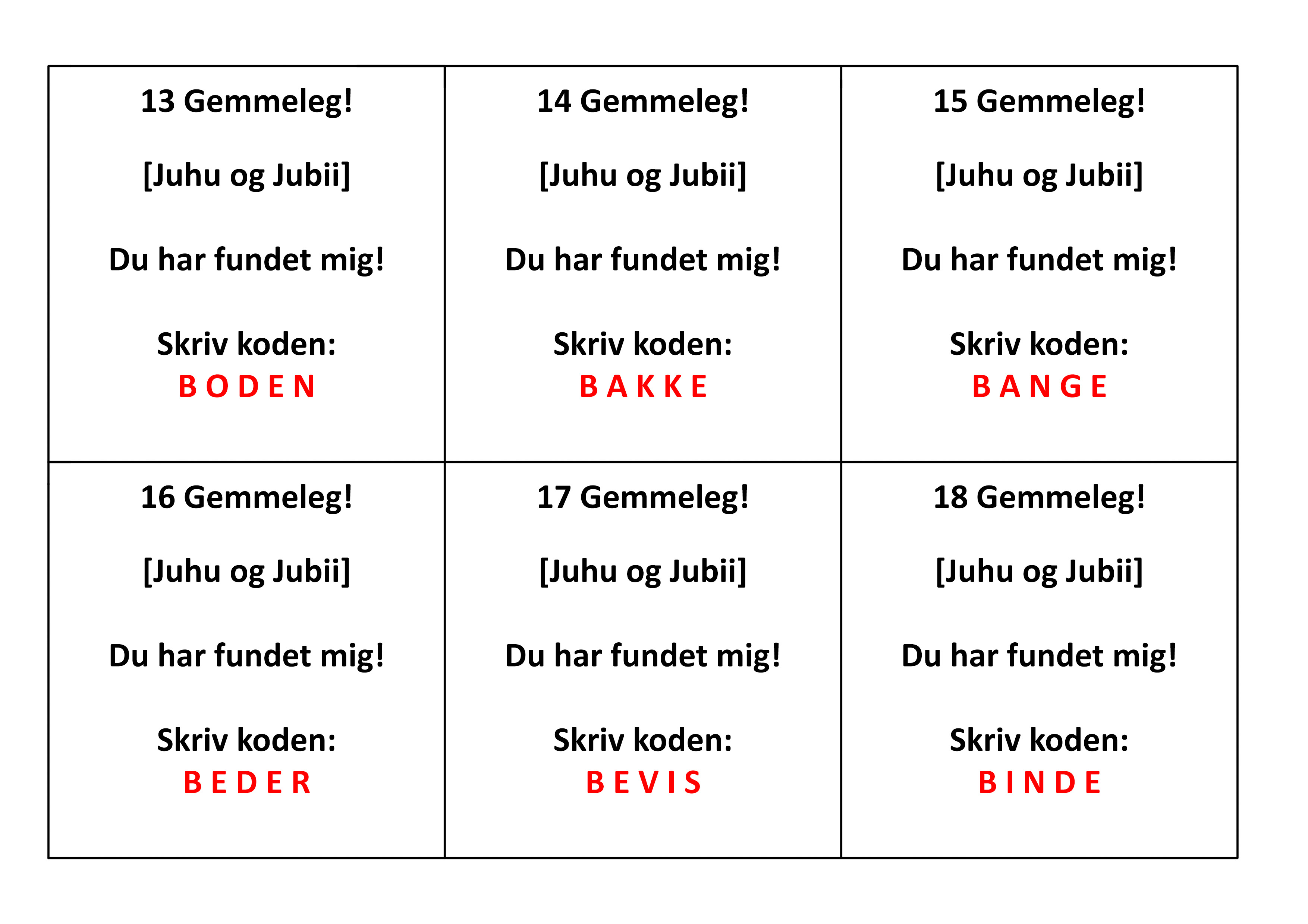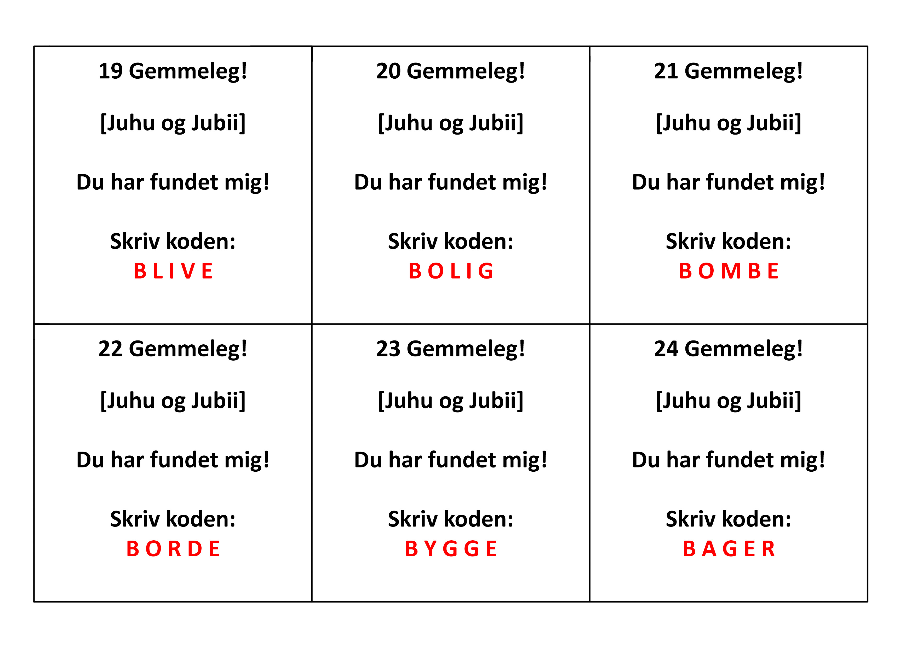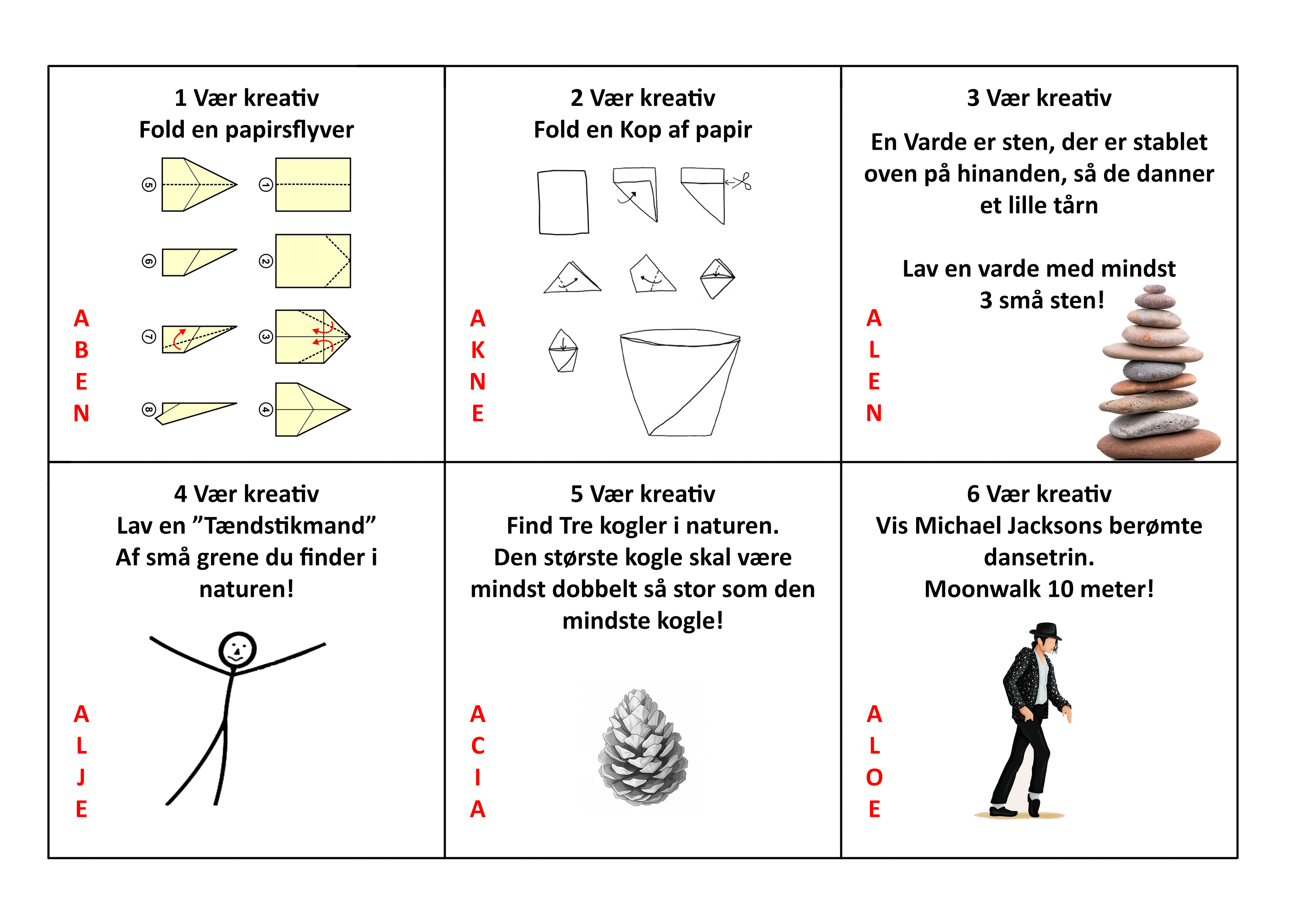 Print og laminer postbeskrivelser (Nogle poster har opgaver, der skal klippes ud og lægges i en kuvert).