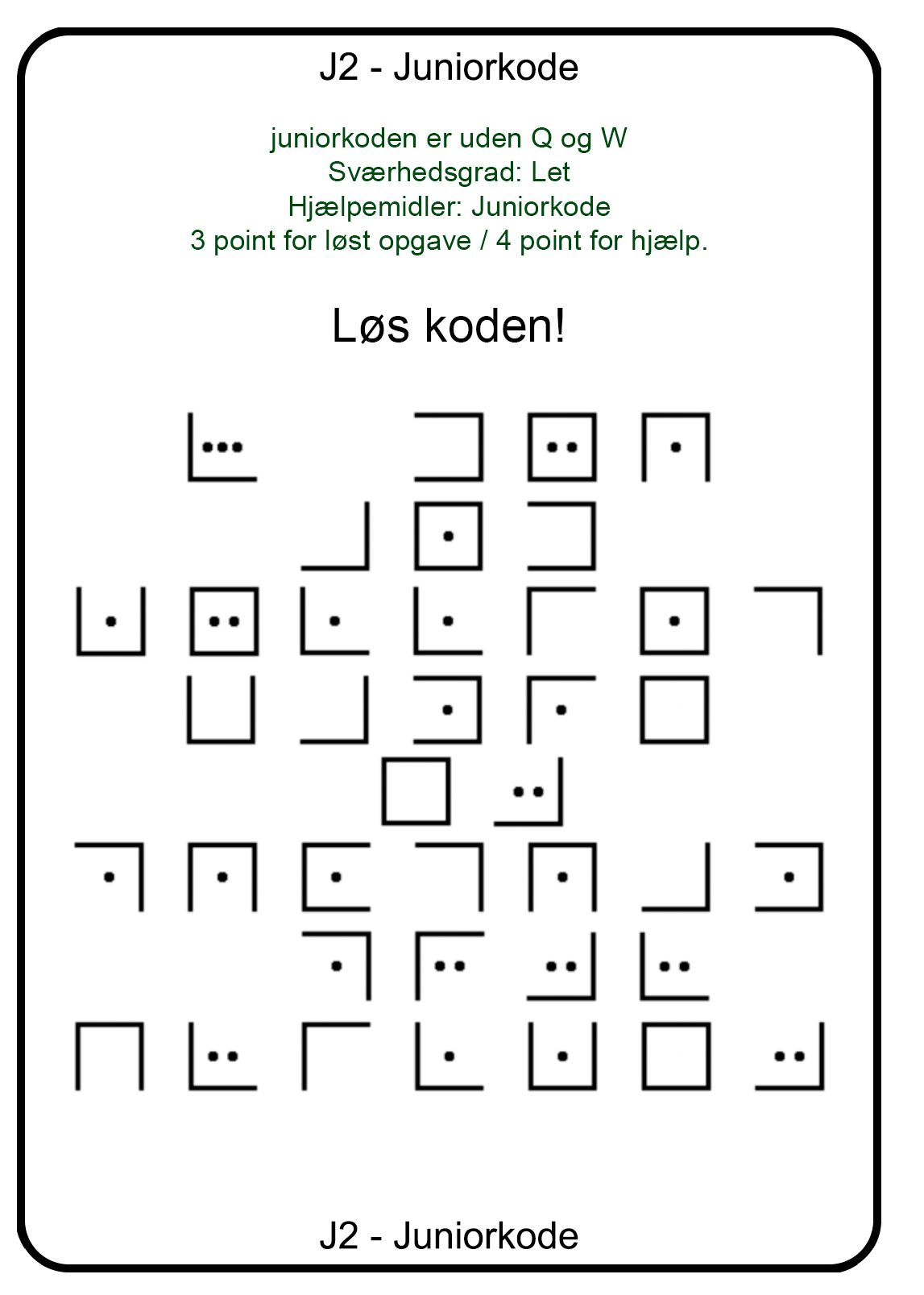 Spillekortet J2. Juniorkode, som er vurderet til at være let. Holdet får udleveret en Juniorkode-nøgle som hjælpemiddel.