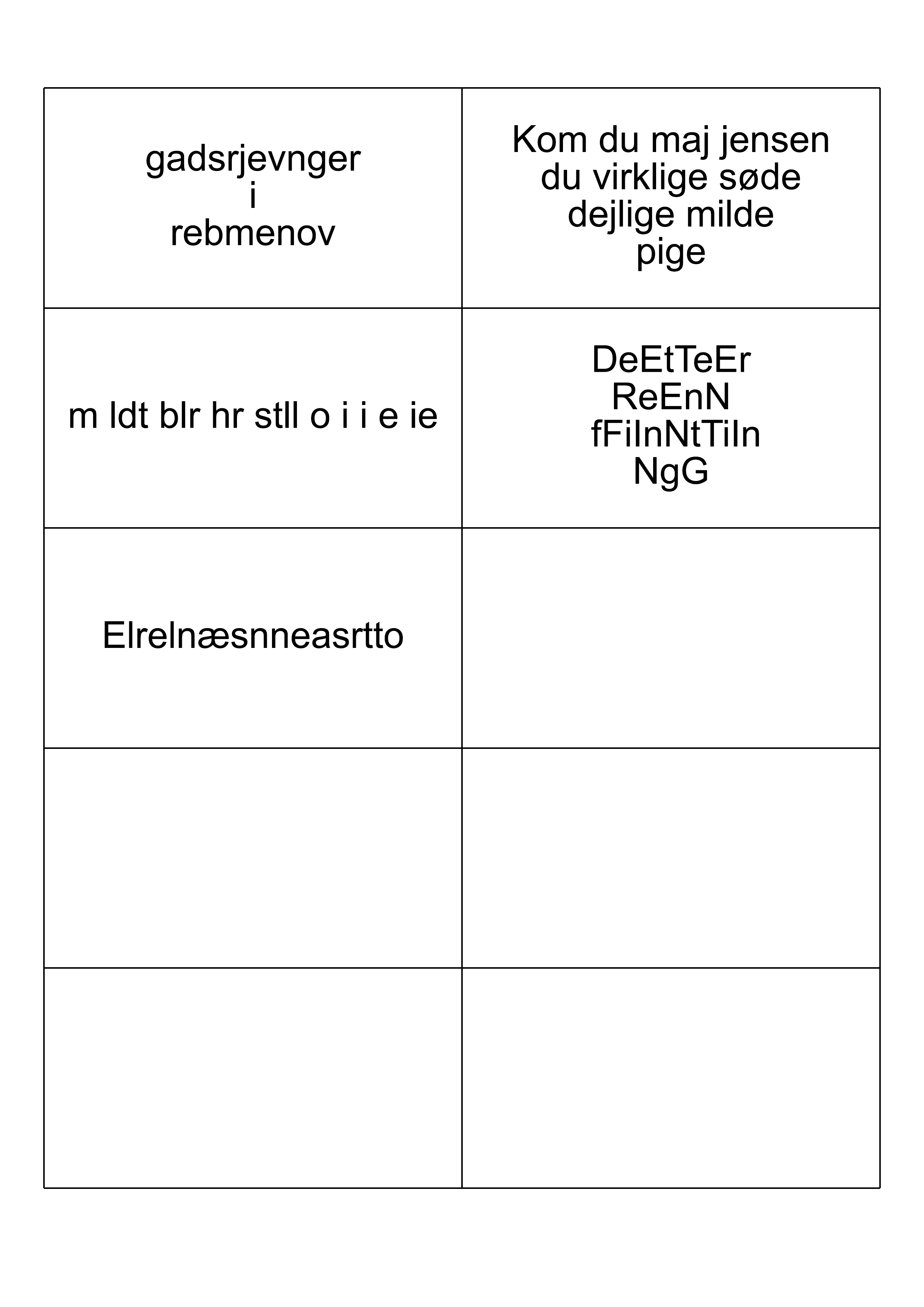 Løsning: Hvert ord er skrevet bag fra, men teksten læses fra venstre mod højre.
