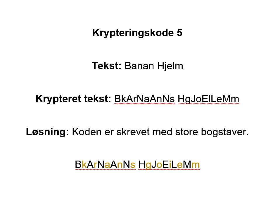 Leg: Lad deltagerne skrive og dekryptere koder skrevet med forslagene ovenover.