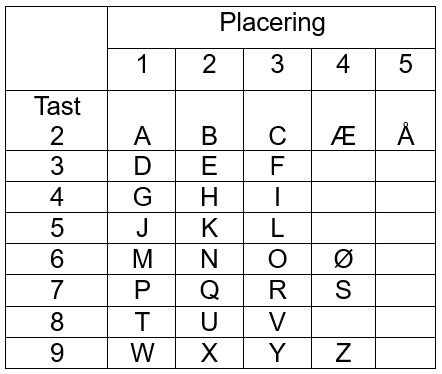 2) Metode nr. to, og den som flest spejdere forbinder med SMS-koden er Ved at nævne tasten og derefter bogstavets placering på tasten.