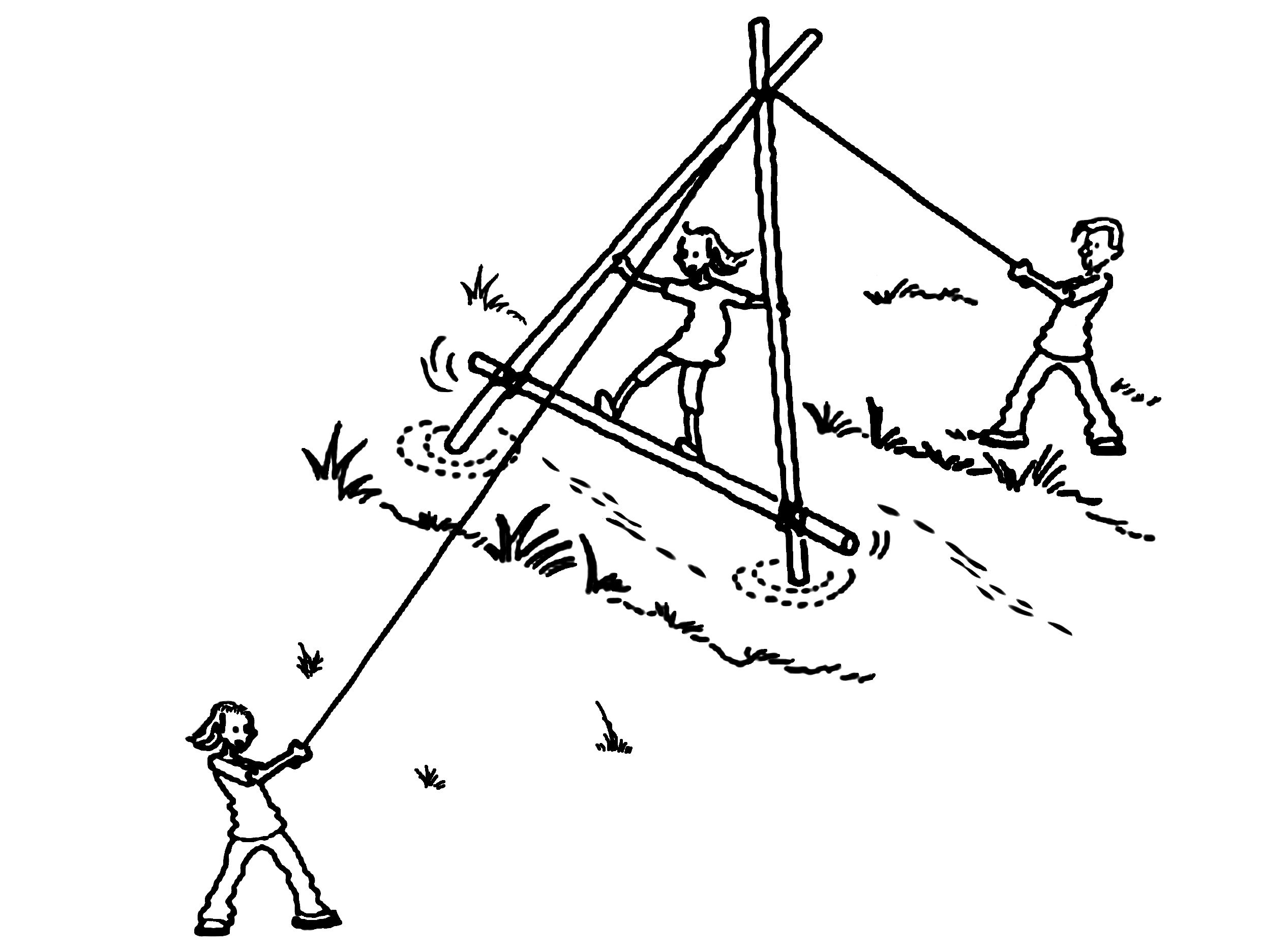 Deltagerne laver en vippebro (eller svingbro) af en saksebuk (broen kan være lavet på forhånd),