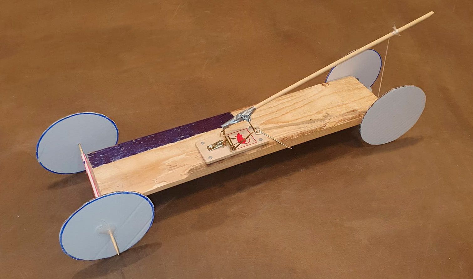 Et sjovt projekt til Mærket mekanikmester kan værer at bygge en Mousetrapcar. Eller på dansk, en Musefælde-bil.